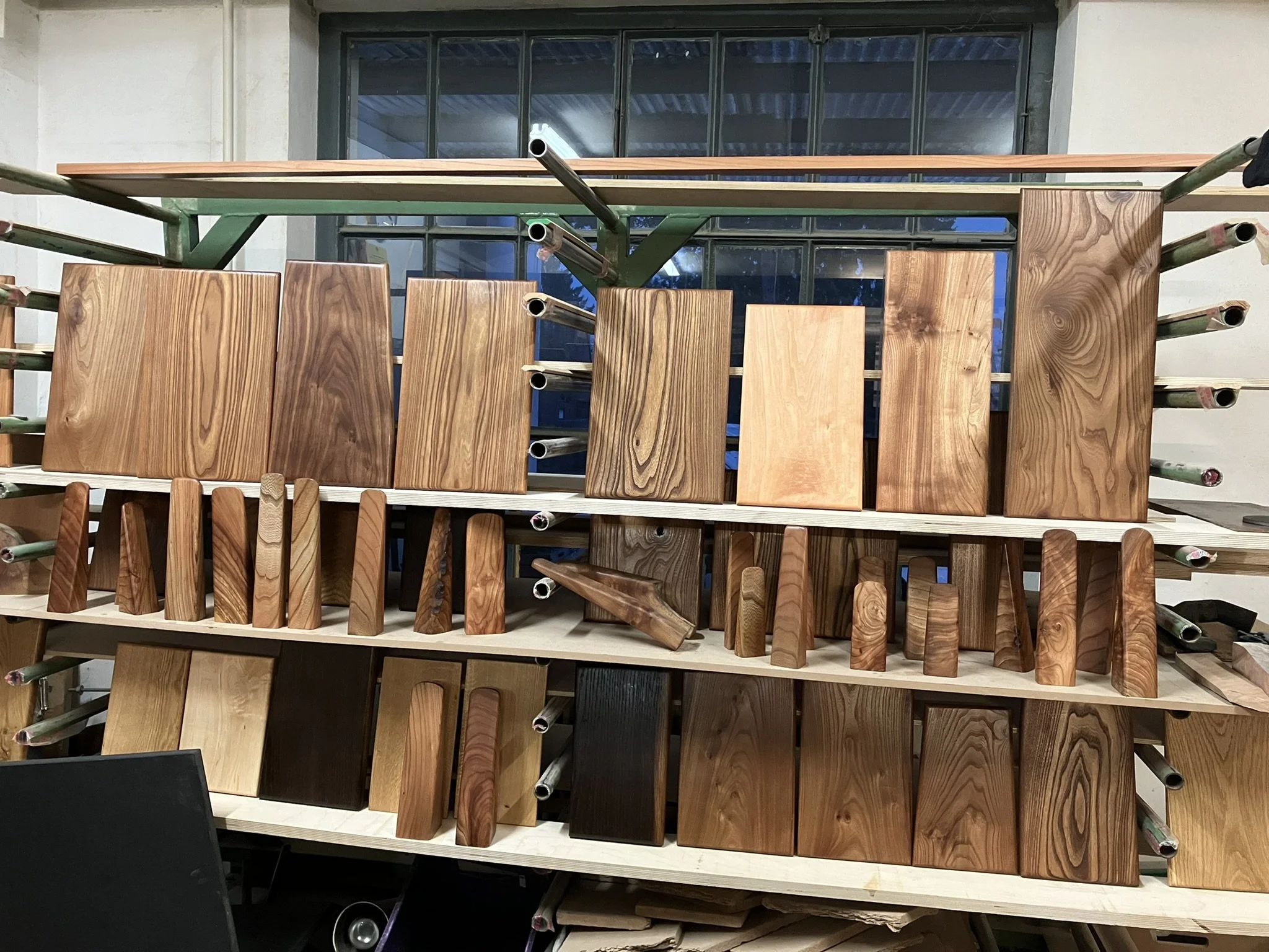 Sid7 Kufentisch aus Rüster, Hocker, Couchtisch, Kästen, Schneidbretter und Schmeichelkeile.