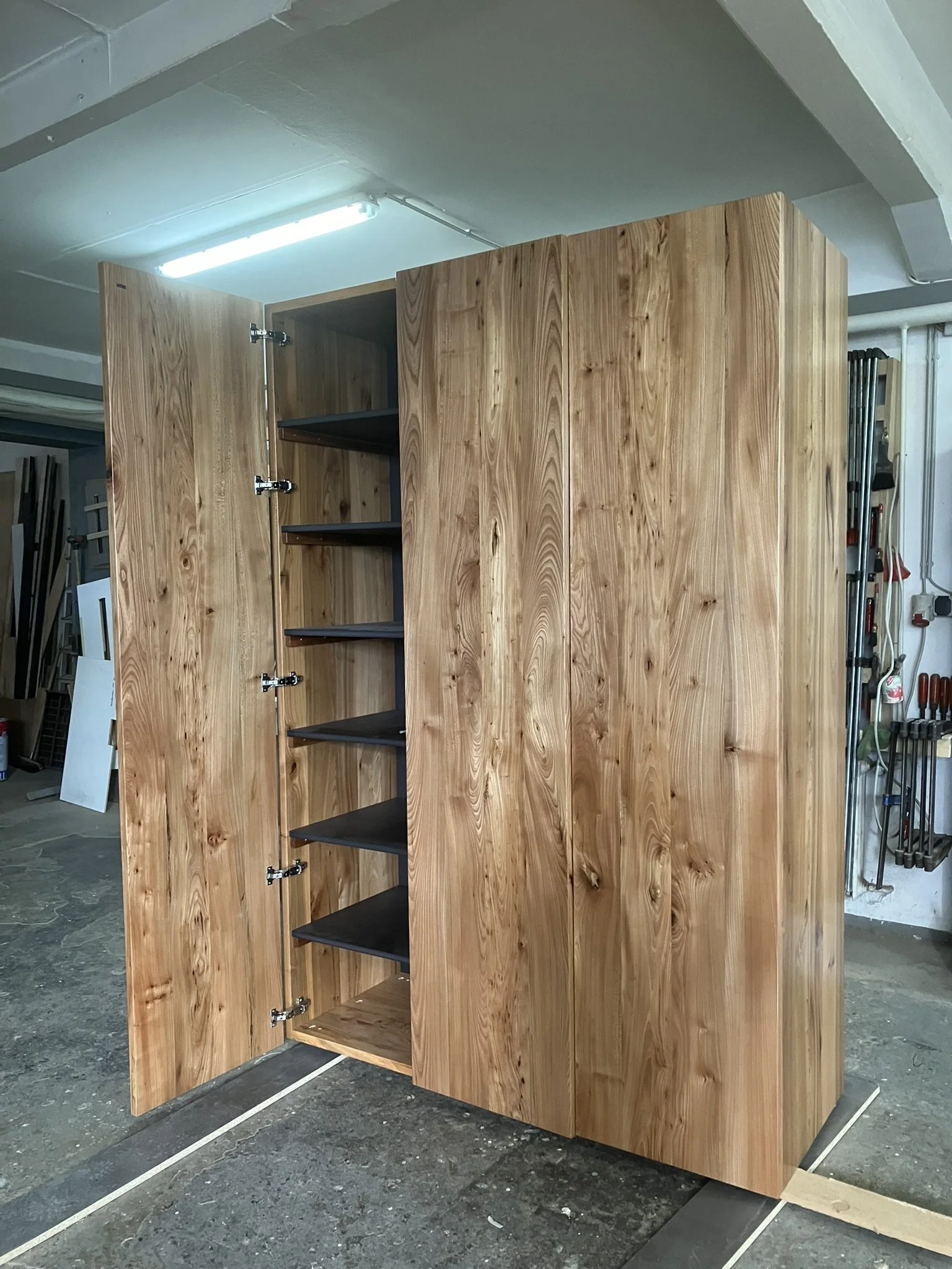 Kleiderschrank aus Rüster und schwarzem MDF, in Köln.7800 Euro inklusiv 19 % Umsatzsteuer und Lieferung nach Köln.