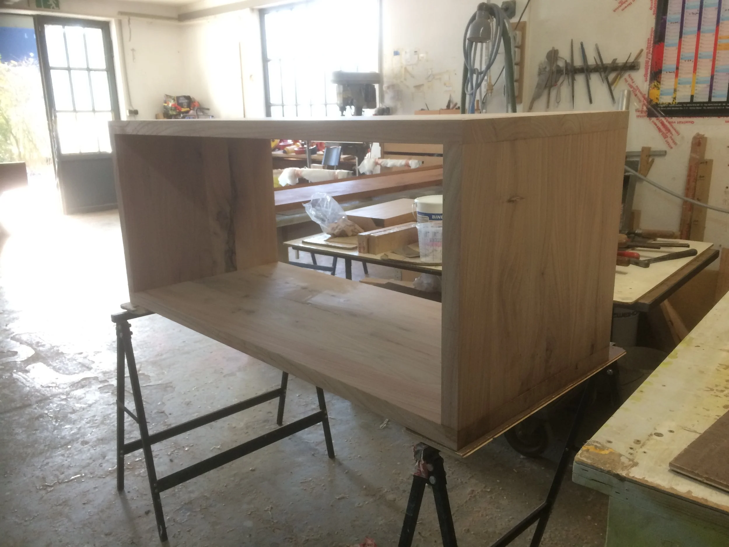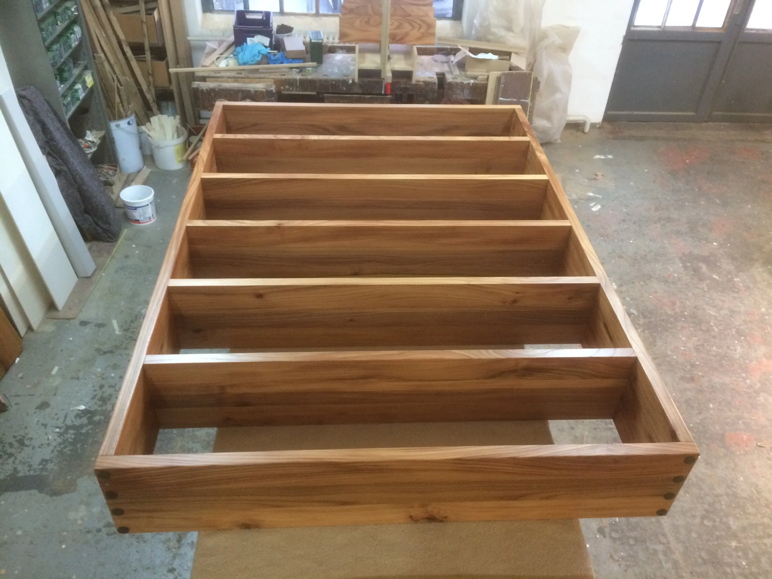 Schönes Regal aus Rüster - ins unter Fach kommen noch Schubladen...