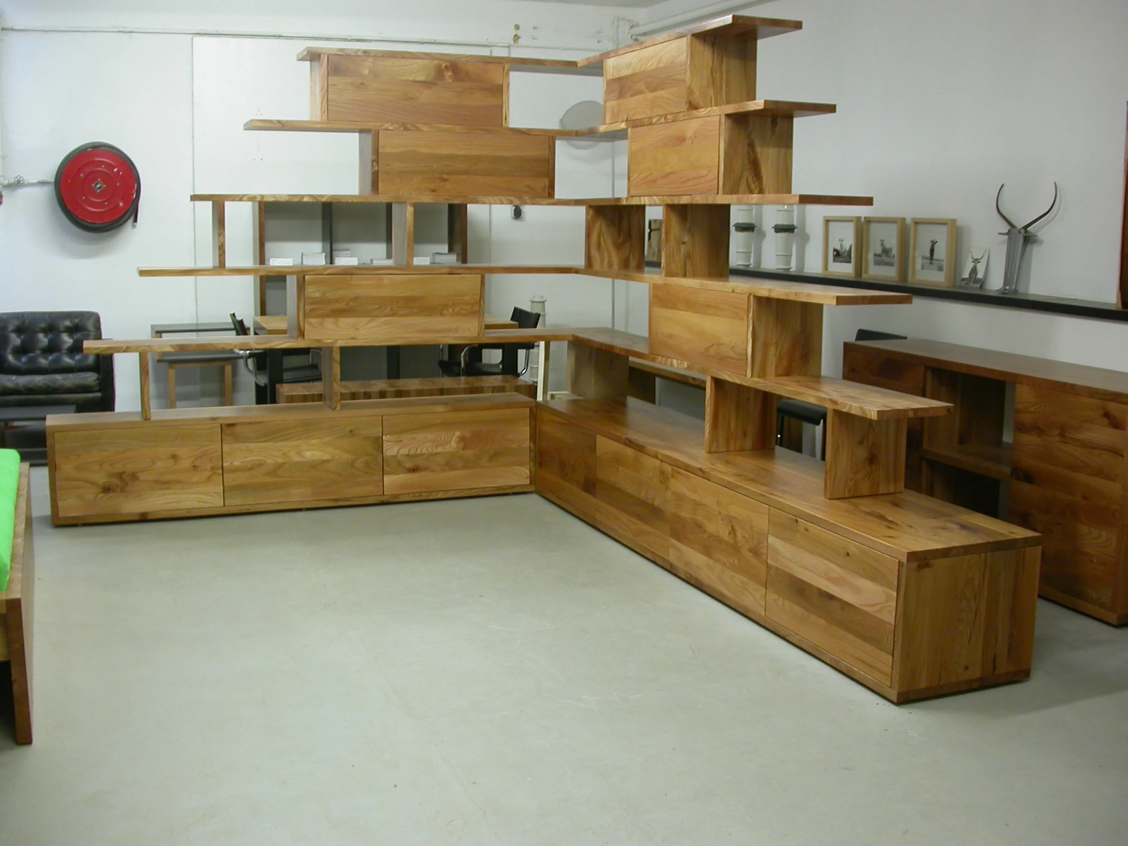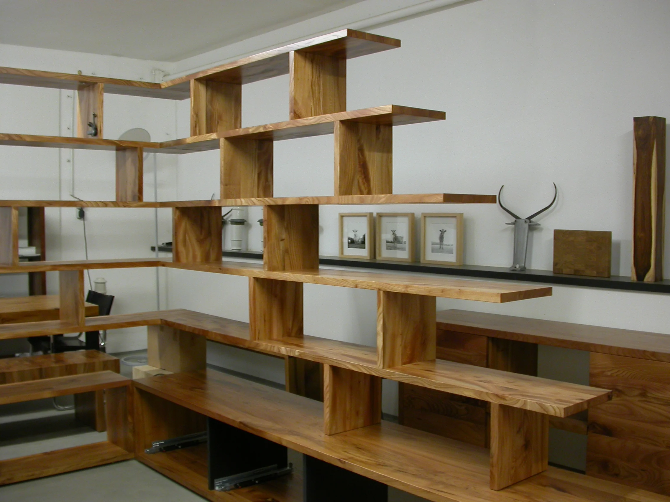Showroom Luckner Möbel und Objekte in Aachen NRW - Regalsystem aus Rüster / Ulmenholz